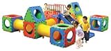 Modular and easily expandable cube play system provides children a great avenue have fun and strengthen their early childhood development. Modular system made of rugged plastic to withstand years of use indoors or outdoors. . A modular interchangeable play system for preschoolers featuring safe blow-molded construction powder-coated steel railings and smooth rounded edges for safety. Includes a tunnel that connects the cubes and large openings for crawling in and out. Combine with other Cube Play units to create a labyrinth. . Assorted colors.. Easy assembly. . Weight limit: 130 lb.. Adult supervision recommended. Assembled Dimensions: 141.00 x 141.00 x 46.00